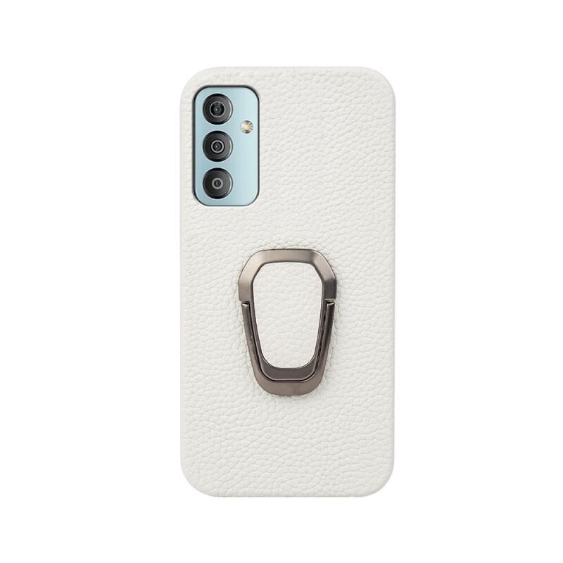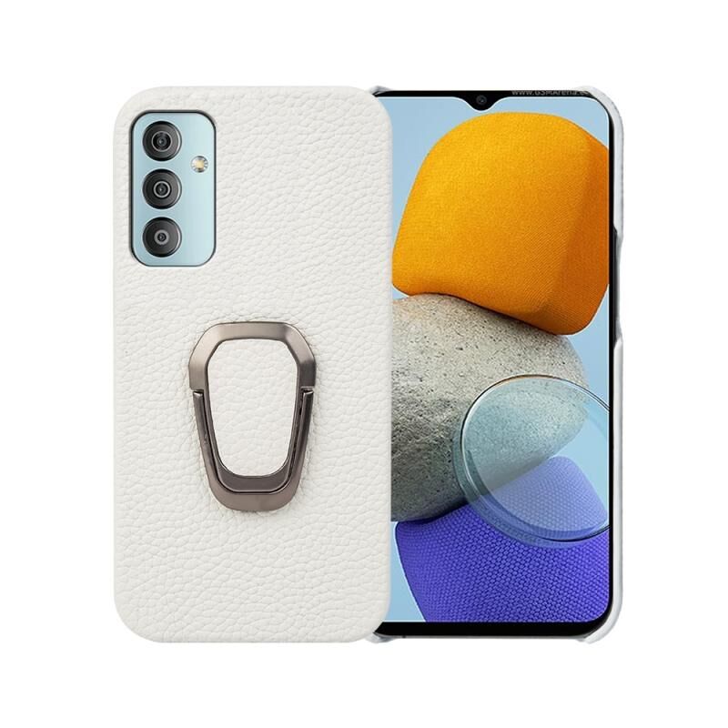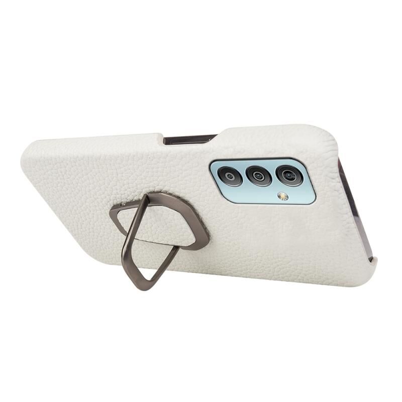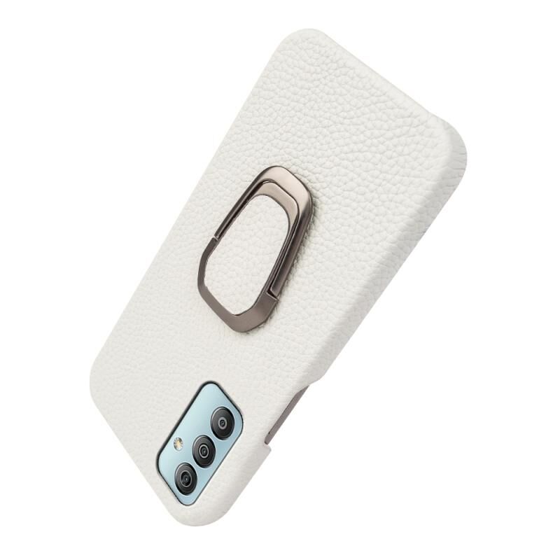 Θήκη κινητού τηλεφώνου Samsung Galaxy M23 5G με δακτύλιο στήριξης, γνήσιο δέρμα με υφή λitchi (Μαύρο)