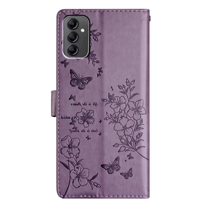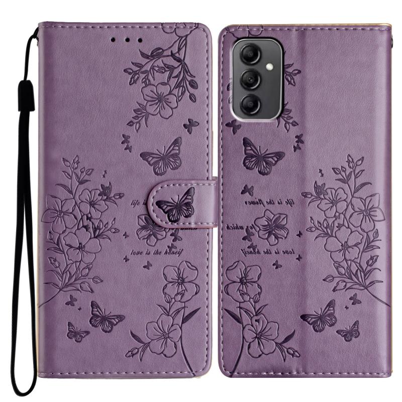 For Samsung Galaxy M23 Butterflies and Flowers Leather Phone Case(Purple)