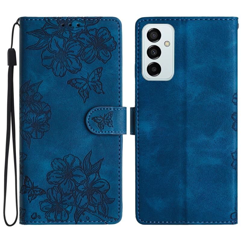 Θήκη κινητού τηλεφώνου Samsung Galaxy M23 Cherry Blossom Butterfly με ανάγλυφο PU υλικό (Μπλε)