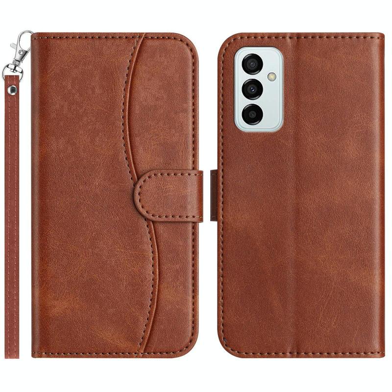 For Samsung Galaxy M23 Dual-Folded S-shape Leather Phone Case(Coffee)