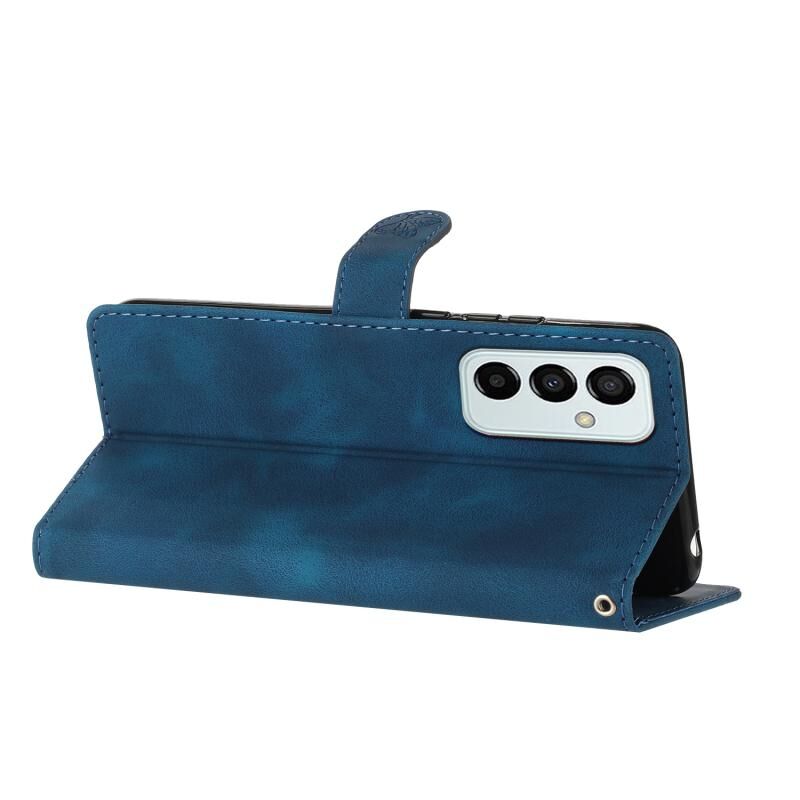 Για Samsung Galaxy M23 λουλούδι πεταλούδα ανάγλυφο μοτίβο δερμάτινη θήκη τηλεφώνου (μπλε)