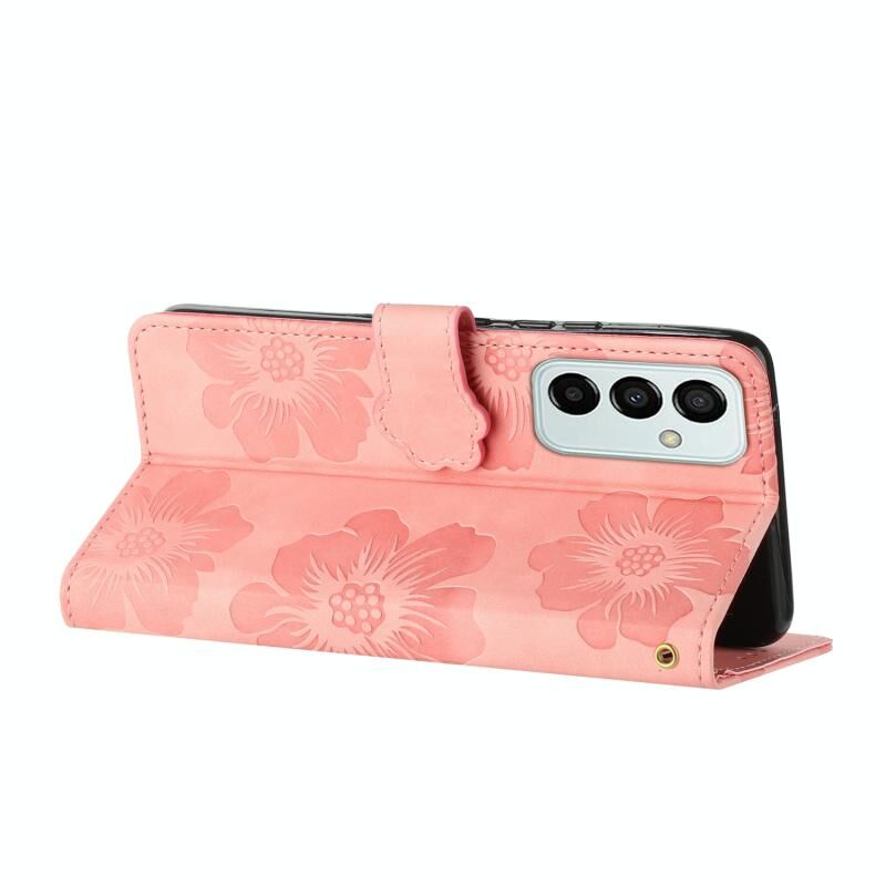Για Samsung Galaxy M23 λουλούδι ανάγλυφο μοτίβο δερμάτινη θήκη τηλεφώνου (ρόζ)