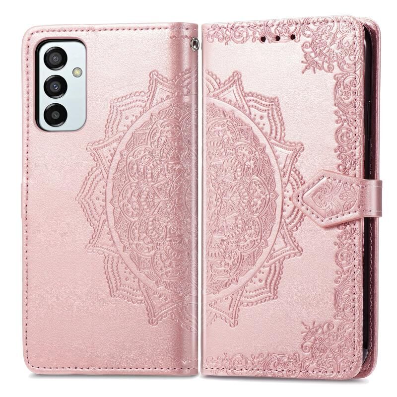 Για Samsung Galaxy M23 Mandala λουλούδι ανάγλυφο δερμάτινη θήκη τηλεφώνου (ροζ χρυσό)