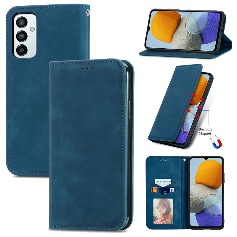 Για το Samsung Galaxy M23 Retro δέρμα αίσθηση μαγνητική δερμάτινη θήκη τηλεφώνου (μπλε)
