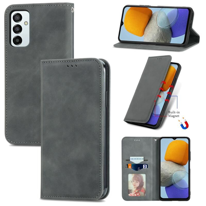 Για Samsung Galaxy M23 Retro δέρμα αίσθηση μαγνητική δερμάτινη θήκη τηλεφώνου (γκρι)