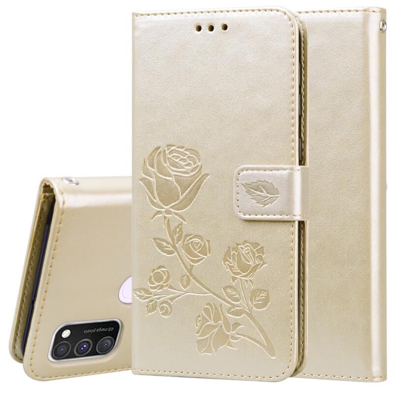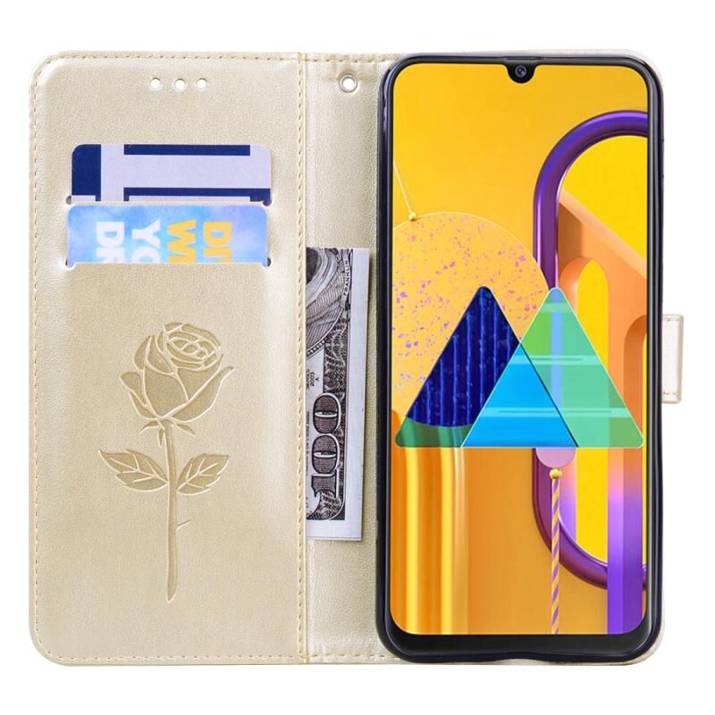 Θήκη Samsung Galaxy M30s / M21 Rose Embossed Horizontal Flip από Δερματίνη PU με Θήκη & Θήκες Καρτών & Πορτοφόλι (Καφέ)