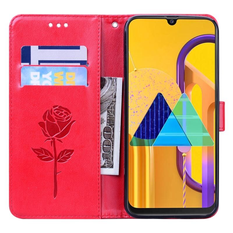 Θήκη Samsung Galaxy M30s / M21 Rose Embossed Horizontal Flip από Δερματίνη PU με Θήκη & Θήκες Καρτών & Πορτοφόλι (Καφέ)