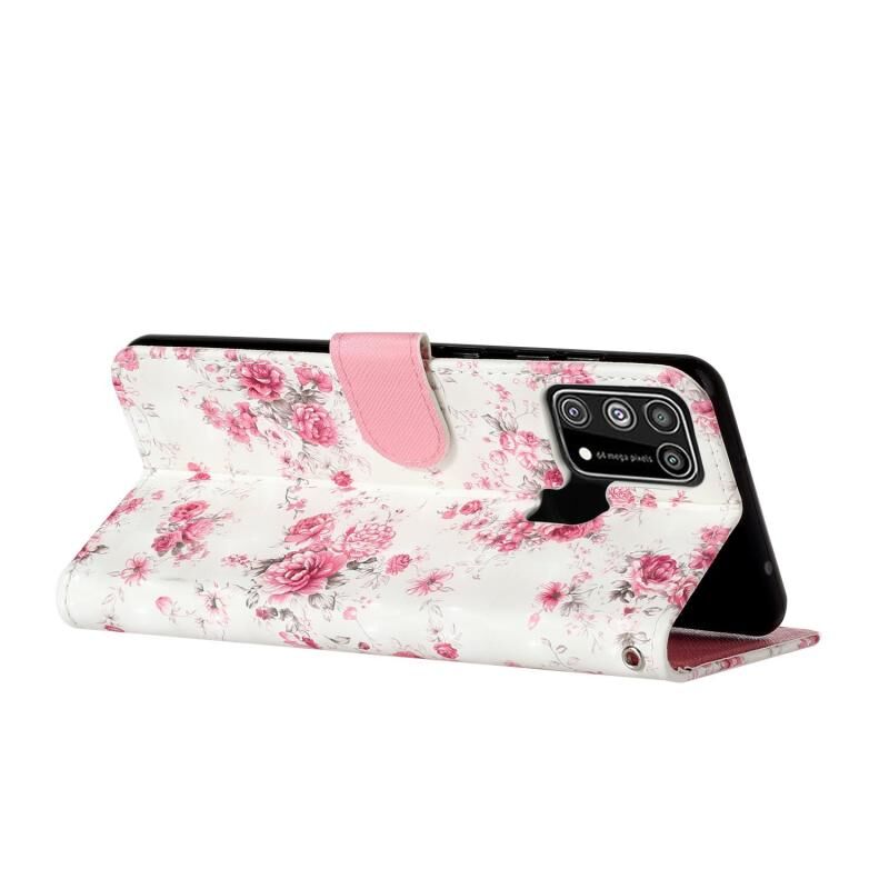 Θήκη Samsung Galaxy M31 3D Μοτίβου Οριζόντια Δερμάτινη με Θήκη & Θήκες Καρτών & Πορτοφόλι (Ροζ Λουλούδι)