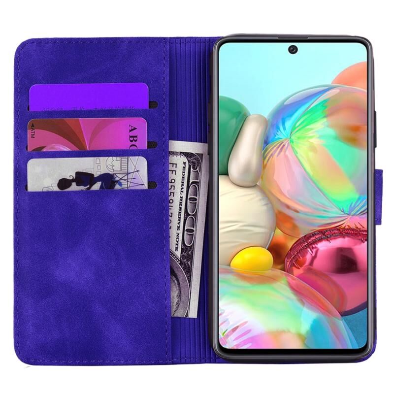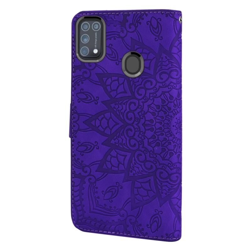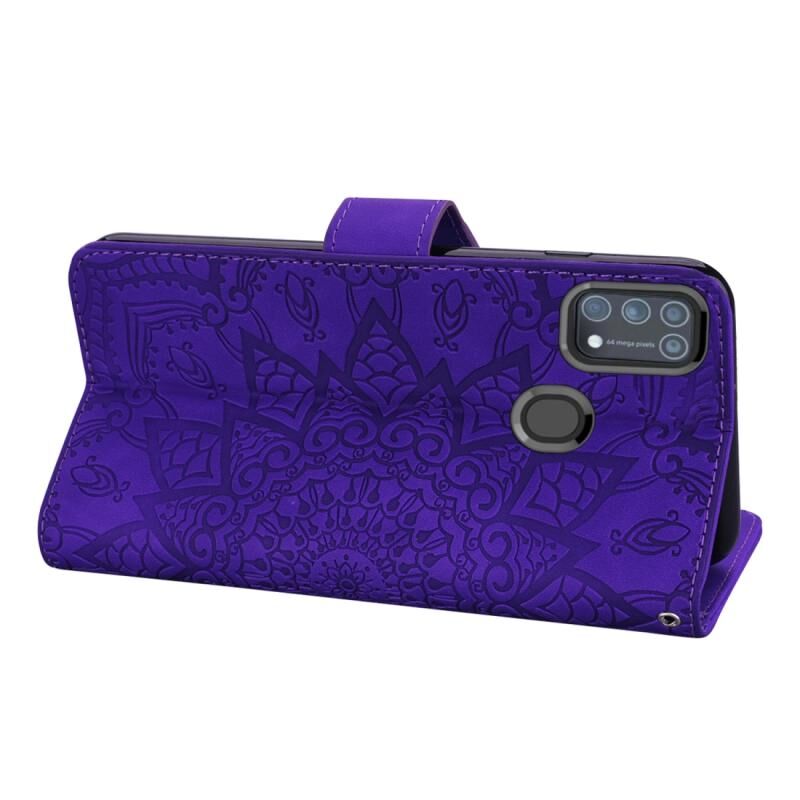 Θήκη Samsung Galaxy M31 με ανάγλυφο σχέδιο ηλίανθου, οριζόντια, από δερματίνη PU με βάση, θήκες για κάρτες, πορτοφόλι & λουρί (Μωβ)
