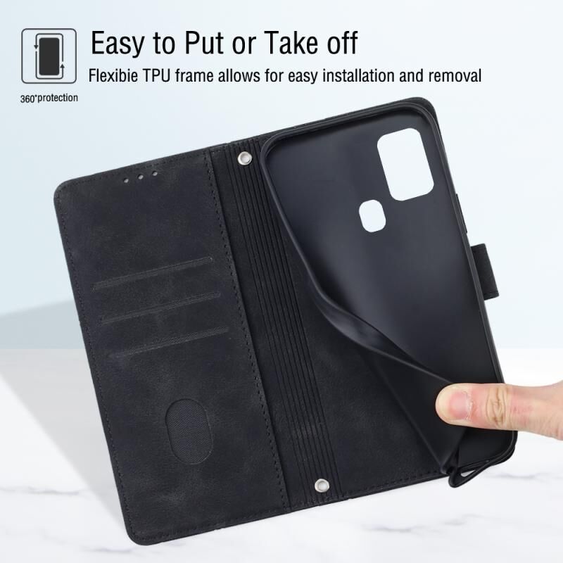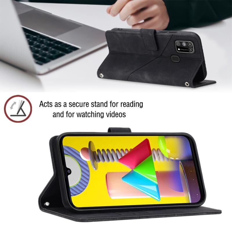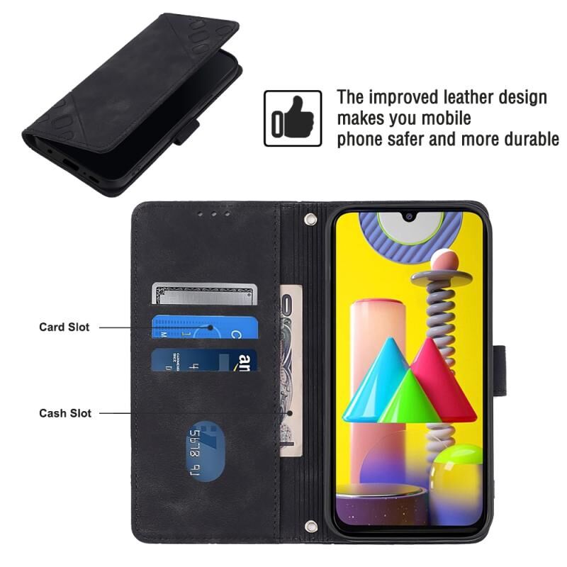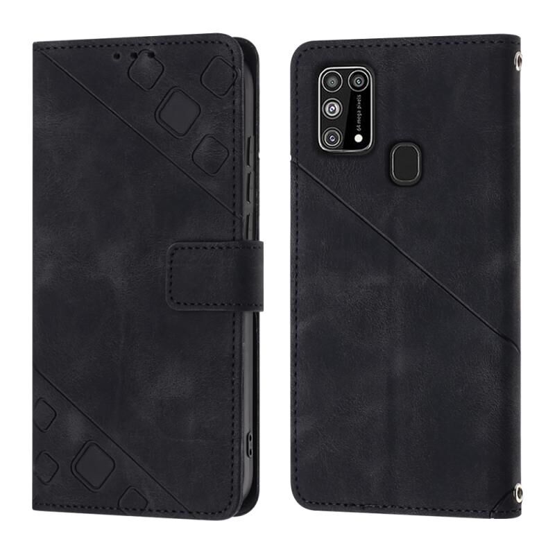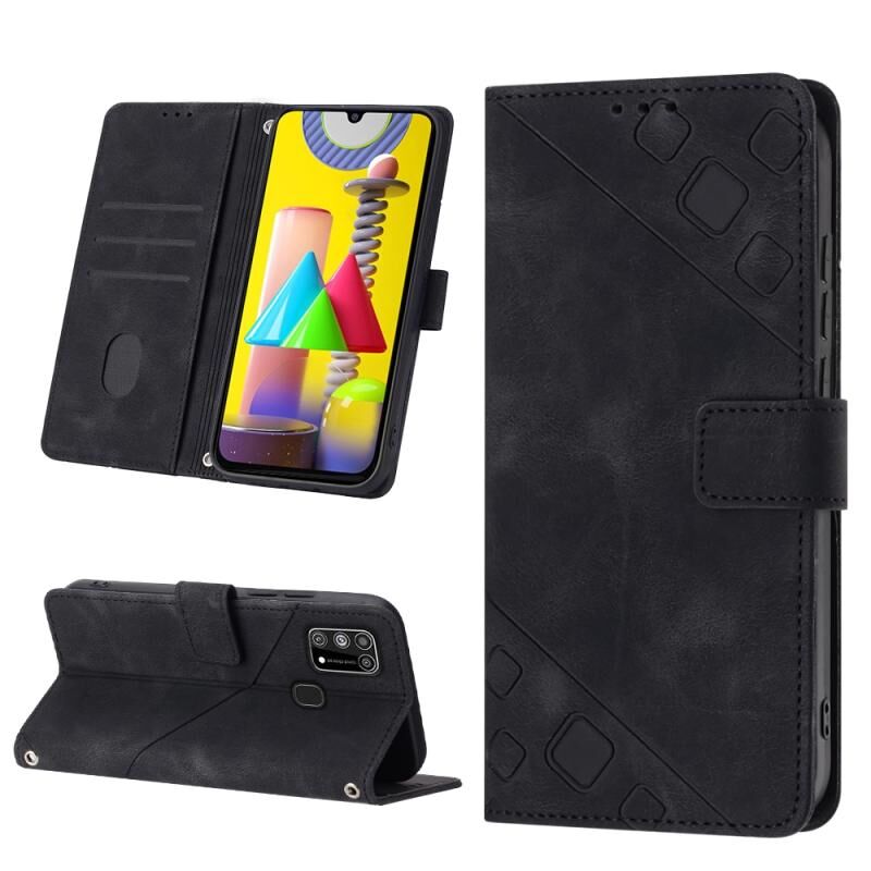 Για Samsung Galaxy M31 / F41 / M21s Skin-feel ανάγλυφη δερμάτινη θήκη τηλεφώνου (Μαύρο)