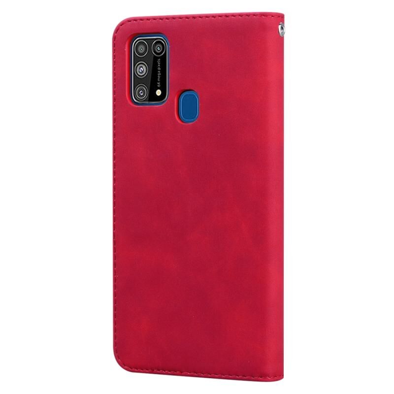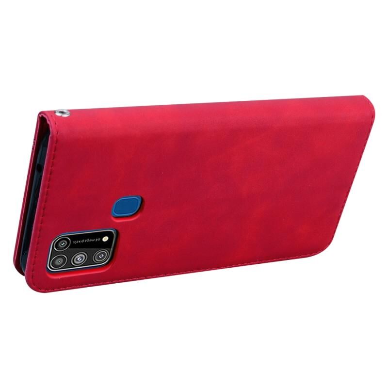 Θήκη Samsung Galaxy M31 παγωμένης όψης, επαγγελματική, μαγνητική, οριζόντια, από δερματίνη PU με βάση & θήκη για κάρτες & κορδόνι (Κόκκινο)