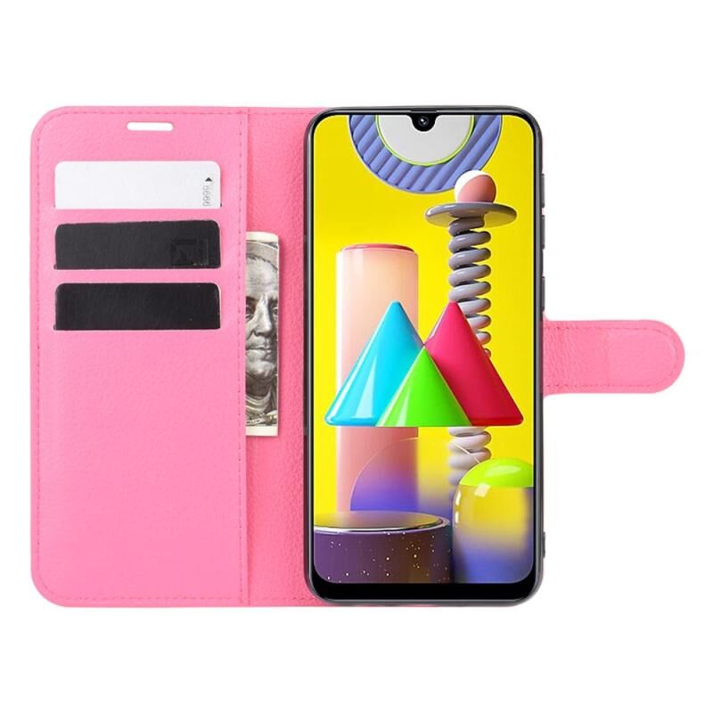 Για Samsung Galaxy M31 Litchi Υφή Οριζόντια Flip Προστατευτική θήκη με θήκη & υποδοχές για κάρτες & πορτοφόλι (Ροζέ κόκκινο)