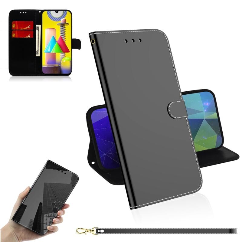Για Samsung Galaxy M31 Lmitated Mirror Surface Horizontal Flip Leather Case με θήκη για κάρτες & υποδοχές & πορτοφόλι & κορδόνι (Μαύρο)