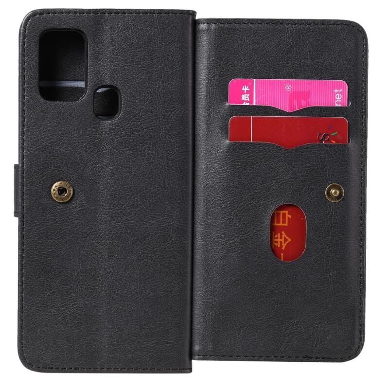 Για Samsung Galaxy M31 Πολυλειτουργική μαγνητική χάλκινη πόρπη οριζόντια Flip αμιγούς χρώματος δερμάτινη θήκη με 10 υποδοχές για κάρτες & πορτοφόλι & θήκη & κορνίζα φωτογραφιών (Μαύρο)