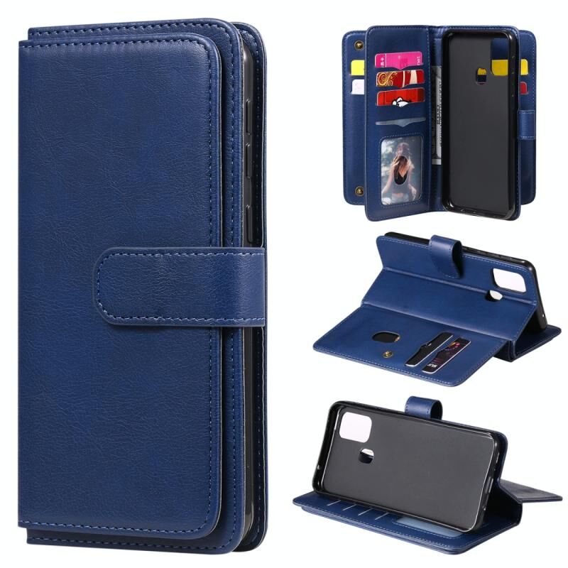 Για Samsung Galaxy M31 Πολυλειτουργική μαγνητική χάλκινη πόρπη οριζόντια Flip αμιγές χρώμα δερμάτινη θήκη με 10 υποδοχές για κάρτες & πορτοφόλι & κάτοχος & κορνίζα φωτογραφιών (σκούρο μπλε)