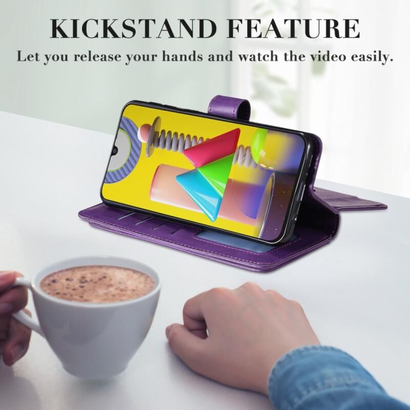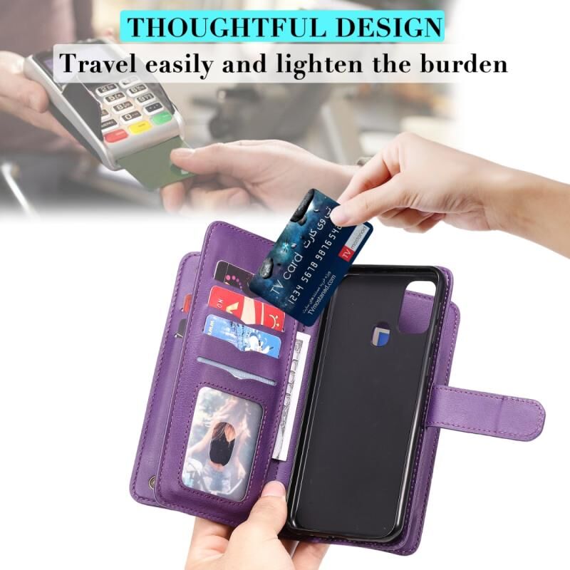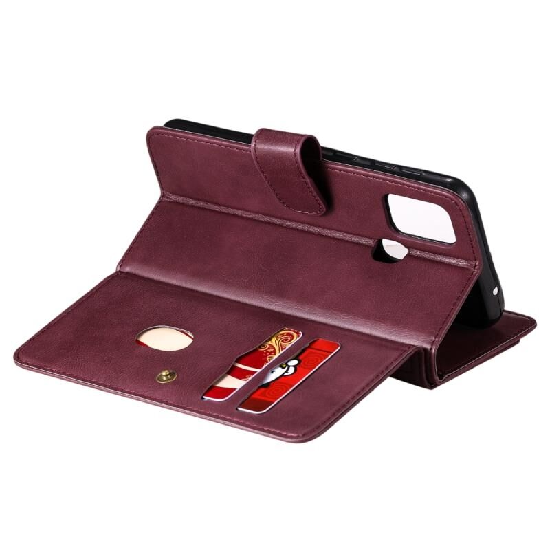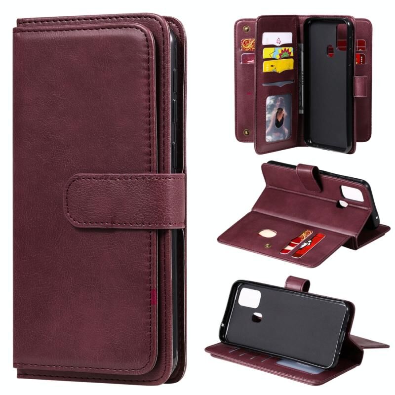 Για Samsung Galaxy M31 Πολυλειτουργική μαγνητική χάλκινη πόρπη Οριζόντια Flip Αμιγές χρώμα δερμάτινη θήκη με 10 υποδοχές για κάρτες & πορτοφόλι & θήκη & κορνίζα φωτογραφιών (κόκκινο κρασί)