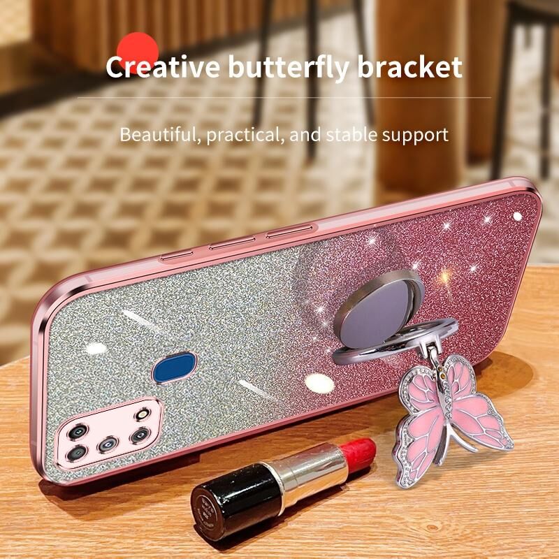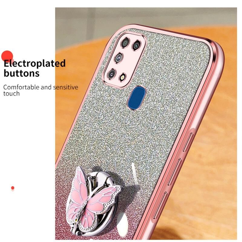 Θήκη κινητού τηλεφώνου Samsung Galaxy M31, TPU με επιμετάλλωση, διαβαθμισμένη λάμψη, πεταλούδα (Ροζ)
