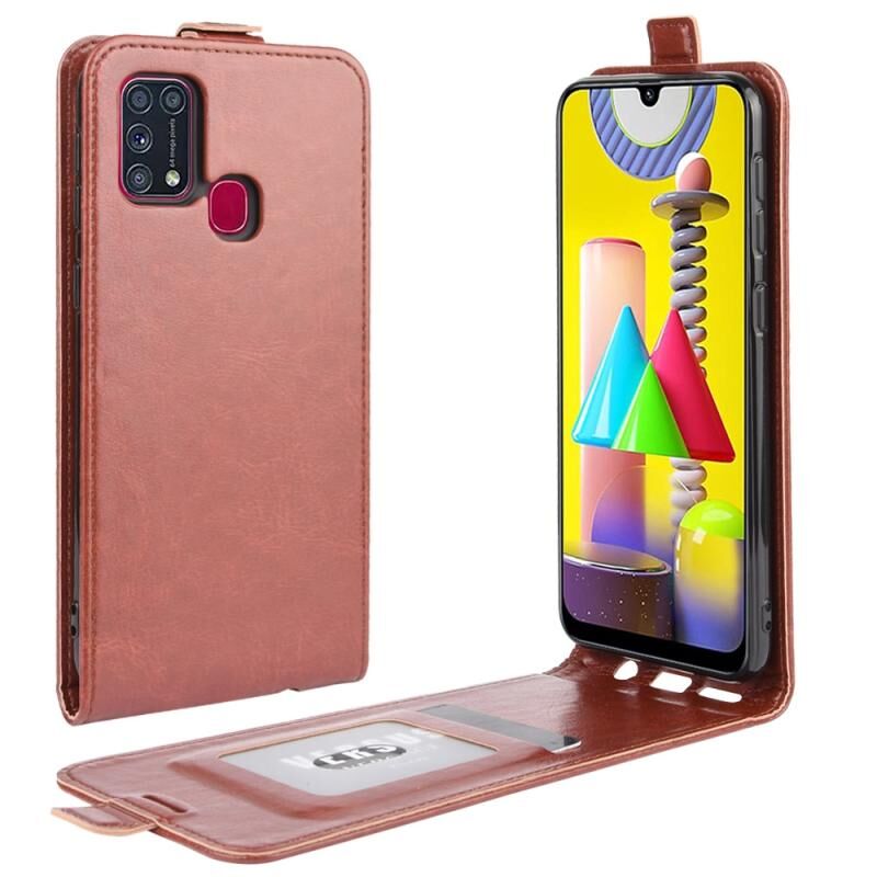 Για Samsung Galaxy M31 R64 Υφή Single κάθετη Flip δέρμα προστατευτική θήκη με υποδοχές για κάρτες & πλαίσιο φωτογραφιών (καφέ)