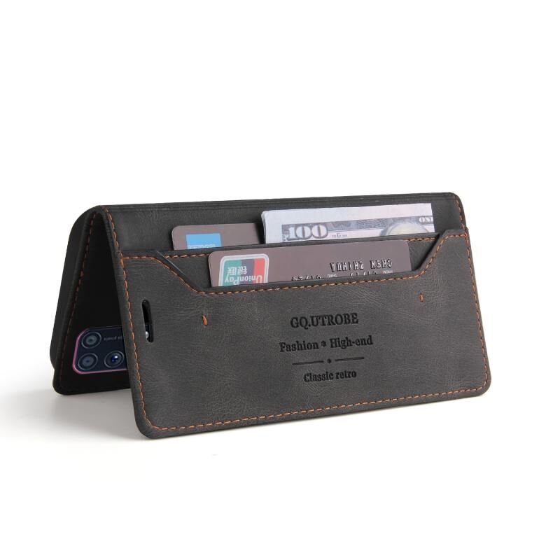 Για το Samsung Galaxy M31 Skin Feel Anti-theft Brush Οριζόντια Flip δερμάτινη θήκη με θήκη & υποδοχές καρτών & πορτοφόλι (μαύρο)
