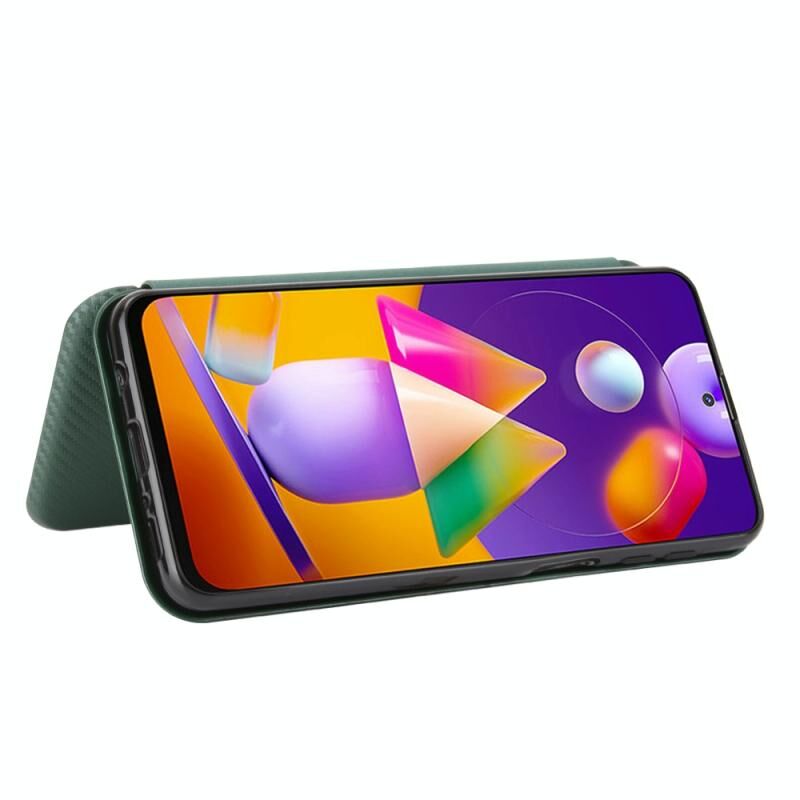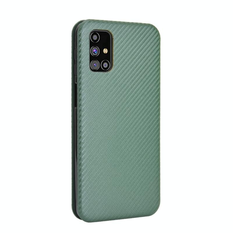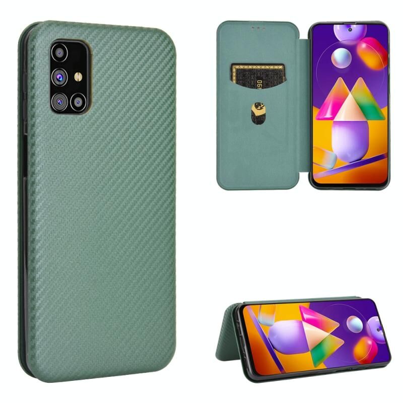 Για Samsung Galaxy M31s Carbon Fiber υφή οριζόντια Flip TPU + PC + PU δέρμα υπόθεση με σχοινί & υποδοχή κάρτας (πράσινο)