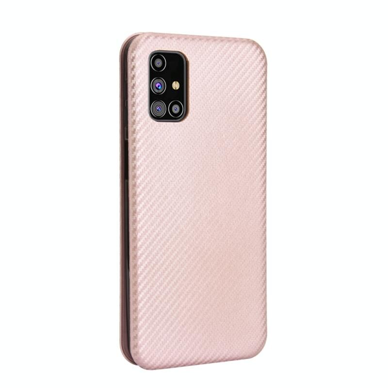 Για Samsung Galaxy M31s Carbon Fiber υφή οριζόντια Flip TPU + PC + PU δέρμα υπόθεση με σχοινί & υποδοχή για κάρτες (ροζ)