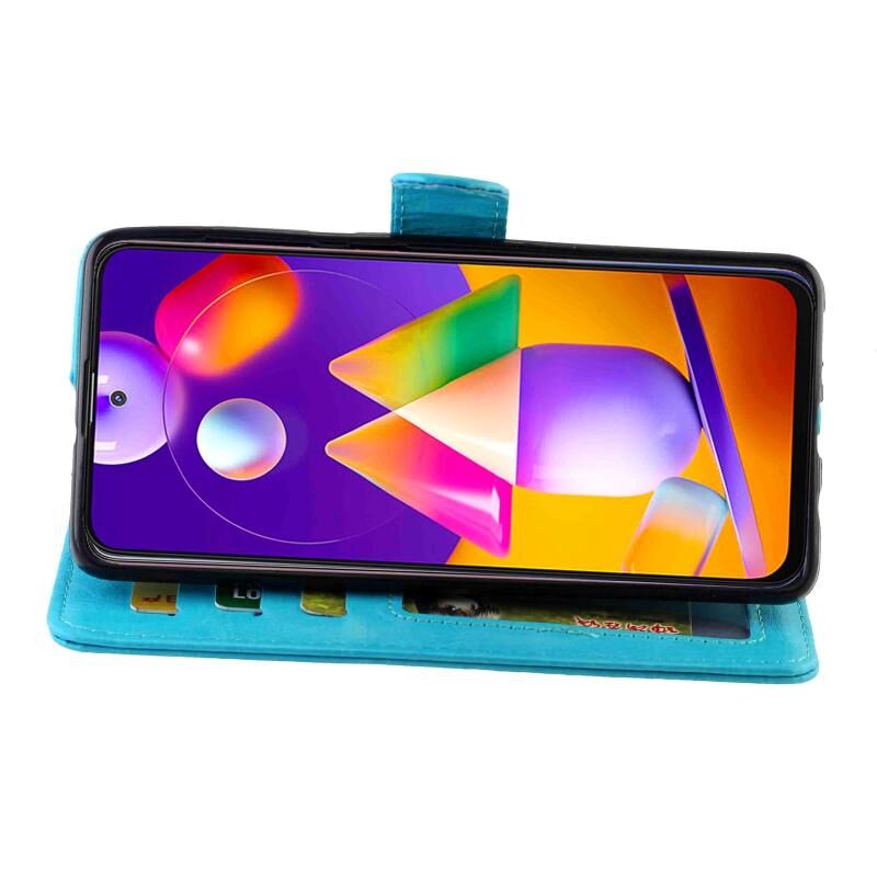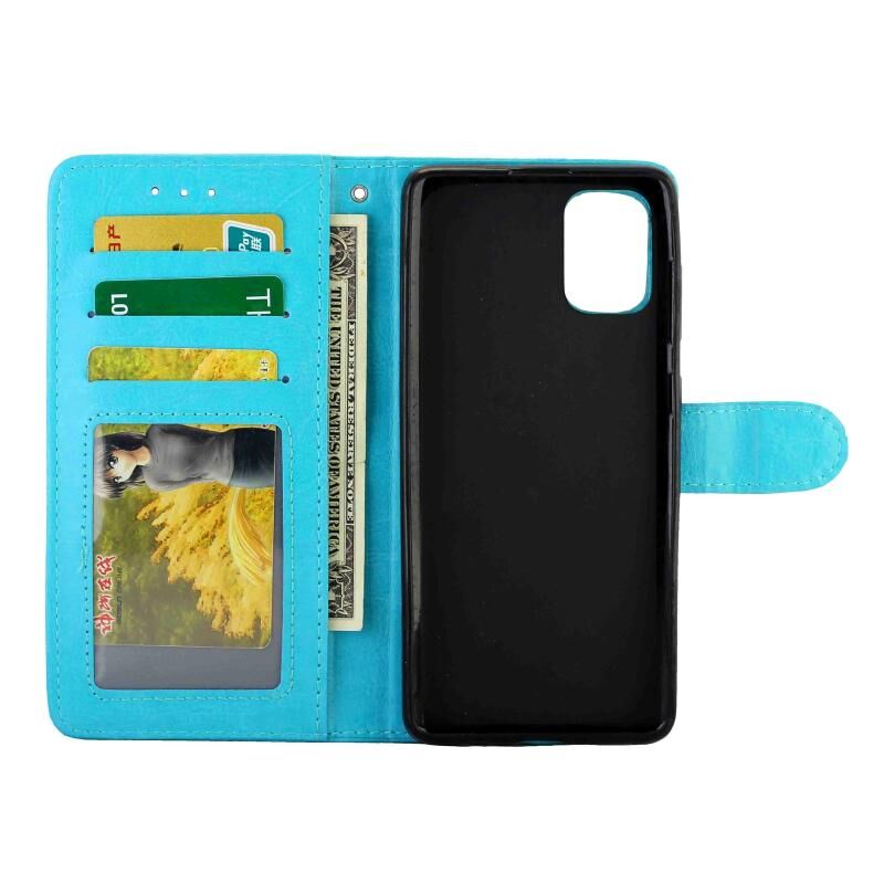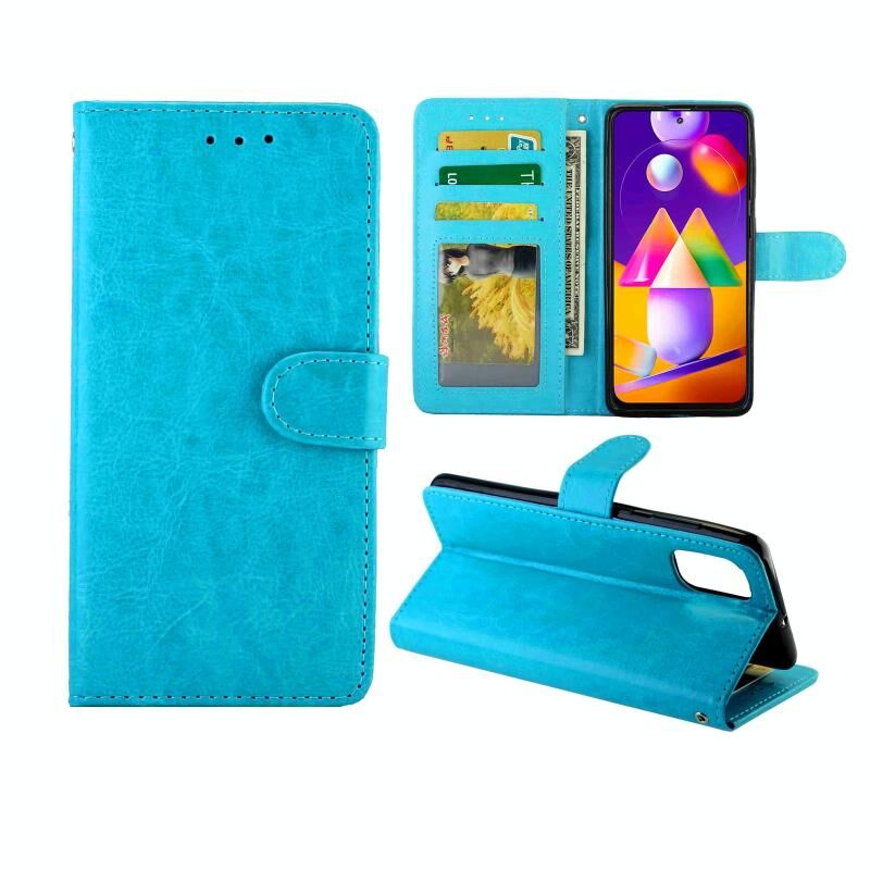 Θήκη προστασίας οριζόντιας αναδίπλωσης από δέρμα Crazy Horse για Samsung Galaxy M31S με βάση στήριξης & θήκες καρτών & πορτοφόλι & κορνίζα φωτογραφιών (Γαλάζιο του μωρού)