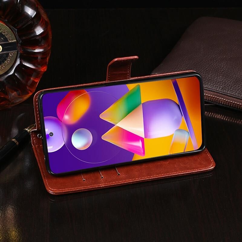 Για Samsung Galaxy M31s idewei θήκη δέρματος οριζόντιας αναδίπλωσης με υφή Crazy Horse με βάση & υποδοχές καρτών & πορτοφόλι (Μαύρο) (idewei)