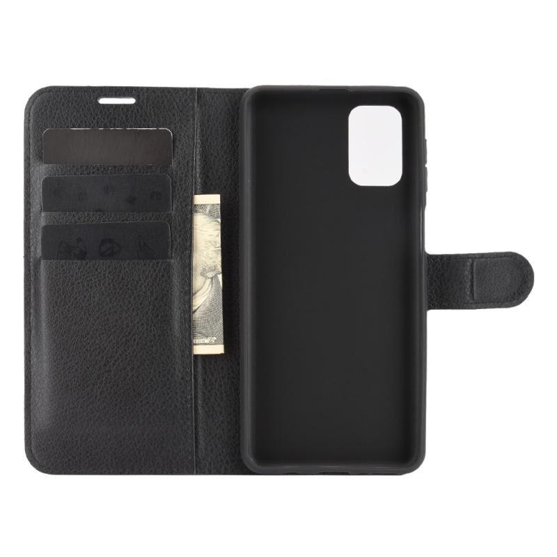 Για Samsung Galaxy M31s Litchi υφή οριζόντια Flip προστατευτική θήκη με υποδοχή & υποδοχές για κάρτες & πορτοφόλι (μαύρο)