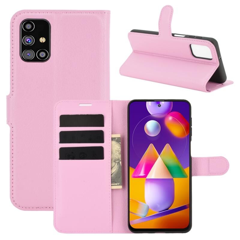 Για Samsung Galaxy M31s Litchi Υφή Οριζόντια Flip Προστατευτική θήκη με θήκη & υποδοχές για κάρτες & πορτοφόλι (ροζ)
