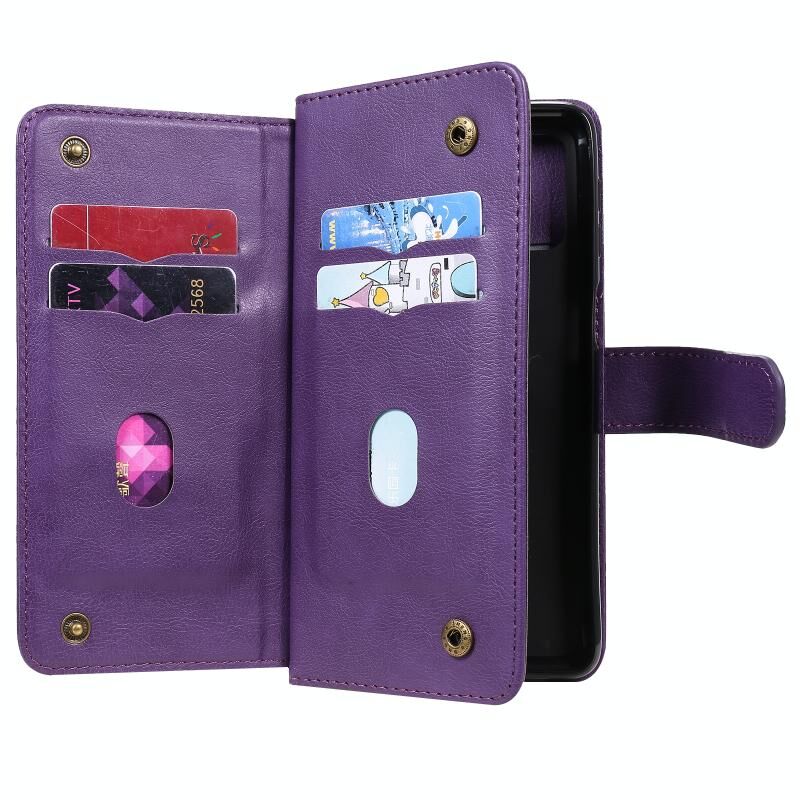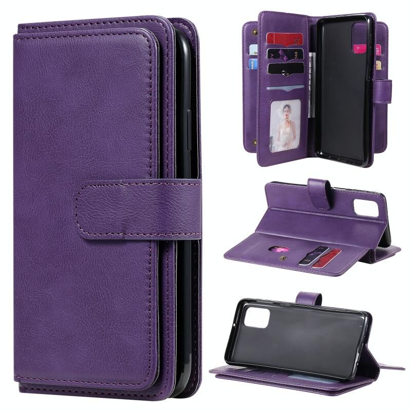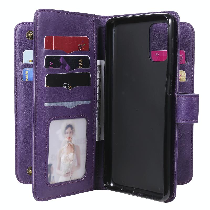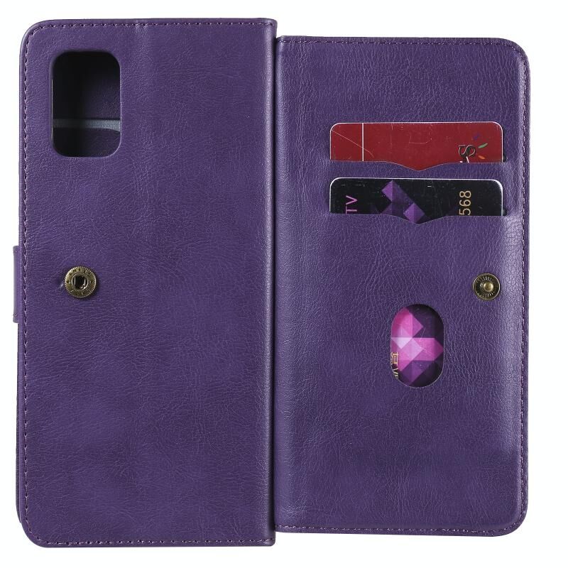 Θήκη Samsung Galaxy M31s Πολυλειτουργική Μαγνητική Θήκη με Αγκράφα από Χαλκό, Οριζόντια, Μονόχρωμη Δερμάτινη με 10 Θήκες Καρτών & Πορτοφόλι & Στήριξη & Κορνίζα Φωτογραφιών (Μωβ)