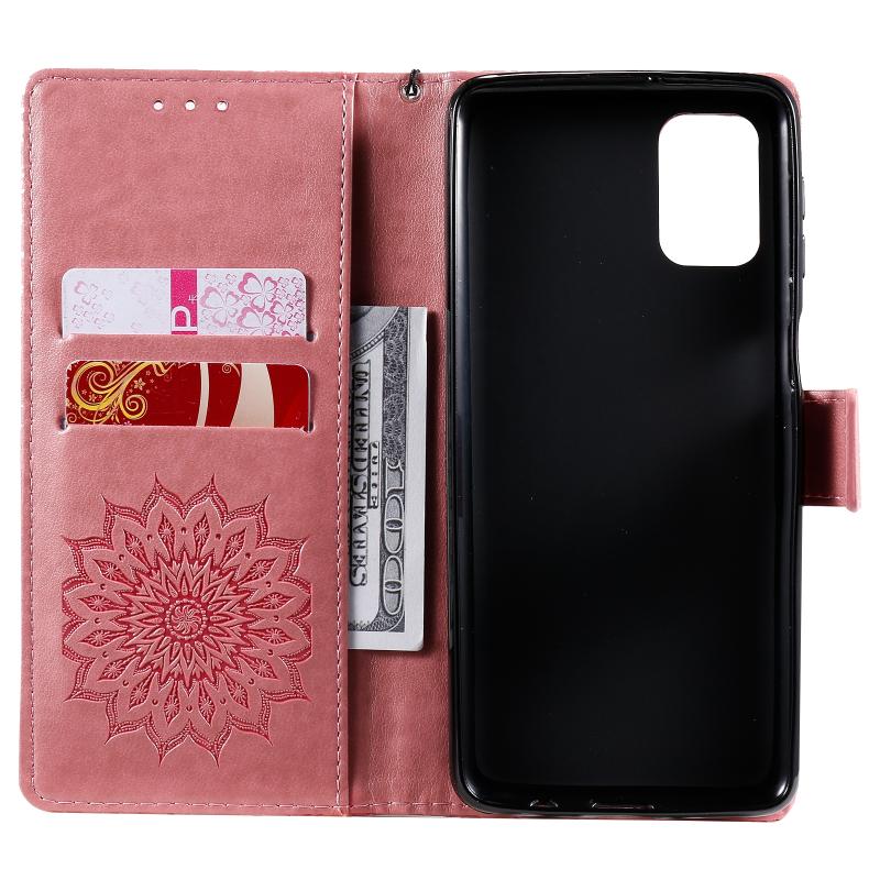 Θήκη για Samsung Galaxy M31s με εκτυπωμένο σχέδιο ηλίανθου, οριζόντια, από δερματίνη PU με βάση στήριξης, θήκες για κάρτες, πορτοφόλι & λουρί (Χρυσό Ρόδι)