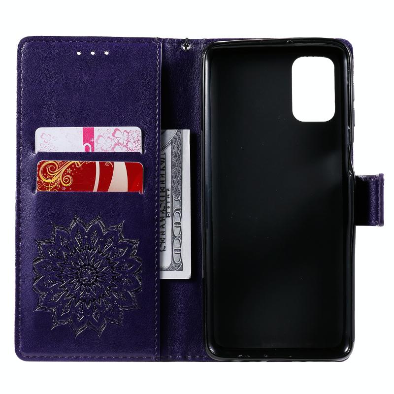 Θήκη για Samsung Galaxy M31s με εκτυπωμένο σχέδιο ηλίανθου, οριζόντια, από δερματίνη PU με βάση στήριξης, θήκες για κάρτες, πορτοφόλι & λουρί (Χρυσό Ρόδι)