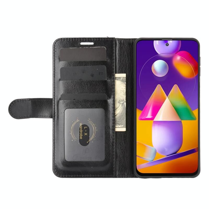Για Samsung Galaxy M31s R64 Υφή ενιαία οριζόντια Flip προστατευτική θήκη με υποδοχή & υποδοχές για κάρτες & πορτοφόλι & κορνίζα φωτογραφιών (Μαύρο)