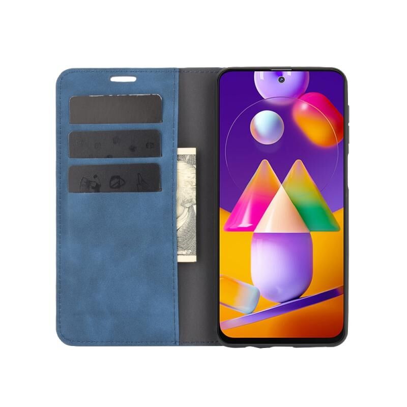 Για Samsung Galaxy M31s Retro-skin Business Μαγνητική δερμάτινη θήκη αναρρόφησης με θήκη & υποδοχές για κάρτες & πορτοφόλι (σκούρο μπλε)
