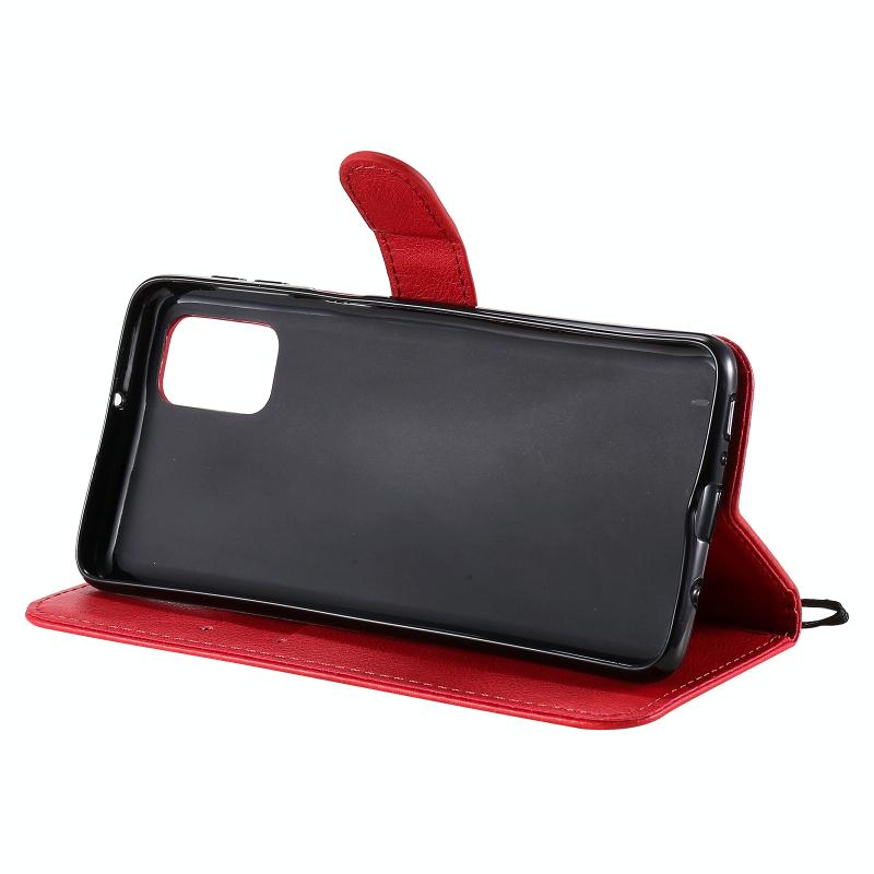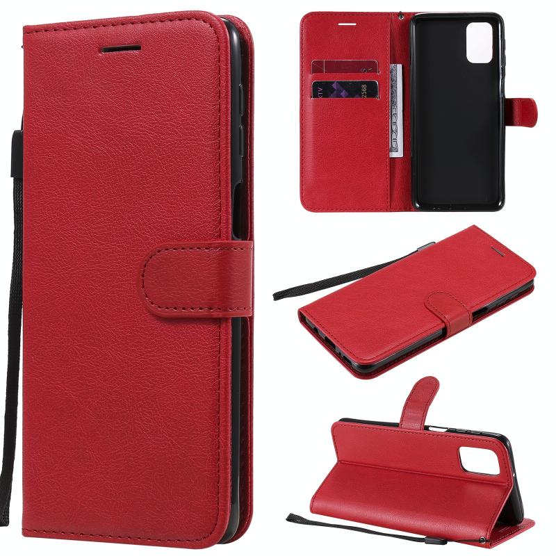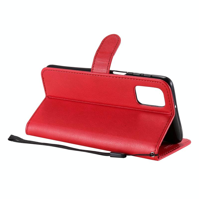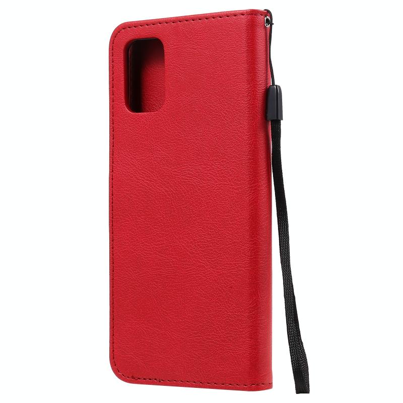 Θήκη δέρματος οριζόντιας αναδίπλωσης για Samsung Galaxy M31s σε μονόχρωμο σχέδιο, με βάση, θήκες καρτών, πορτοφόλι, κορνίζα φωτογραφιών και κορδόνι (Χρυσό Ρόδι)