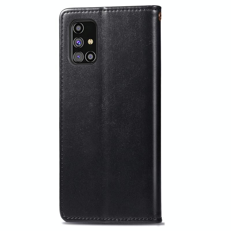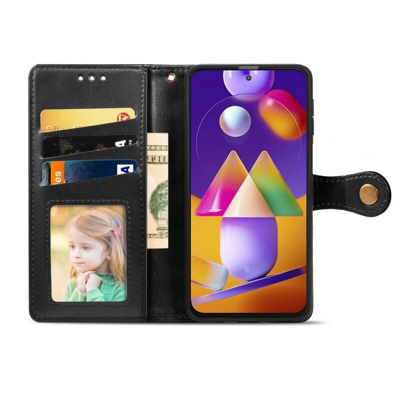 Για Samsung Galaxy M31s Αμιγές χρώμα δέρμα αγκράφα υπόθεση τηλεφώνου με κορδόνι & πλαίσιο φωτογραφιών & υποδοχή για κάρτες & πορτοφόλι & λειτουργία Stand (Μαύρο)