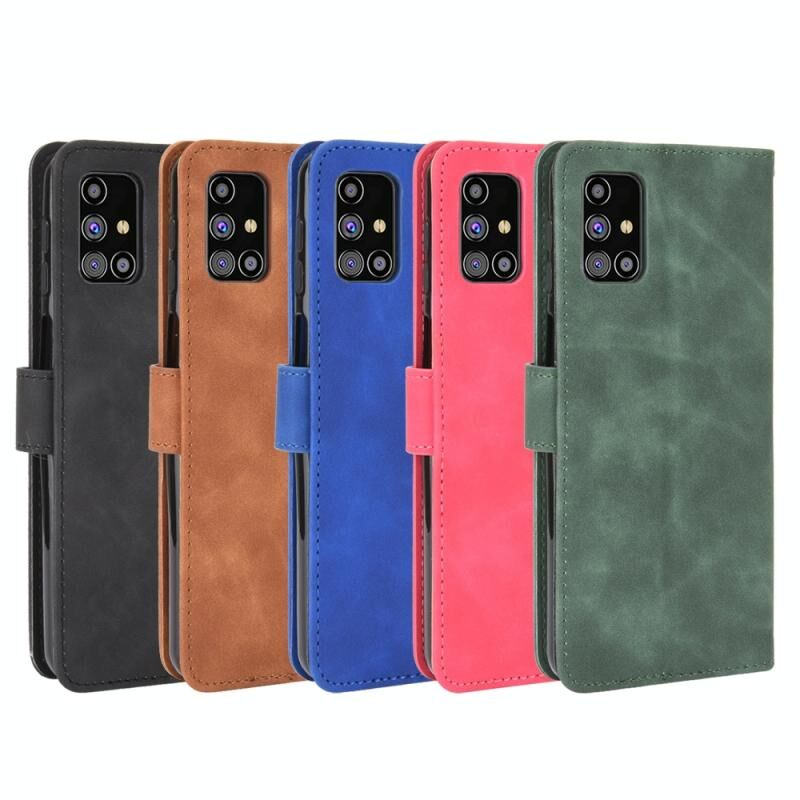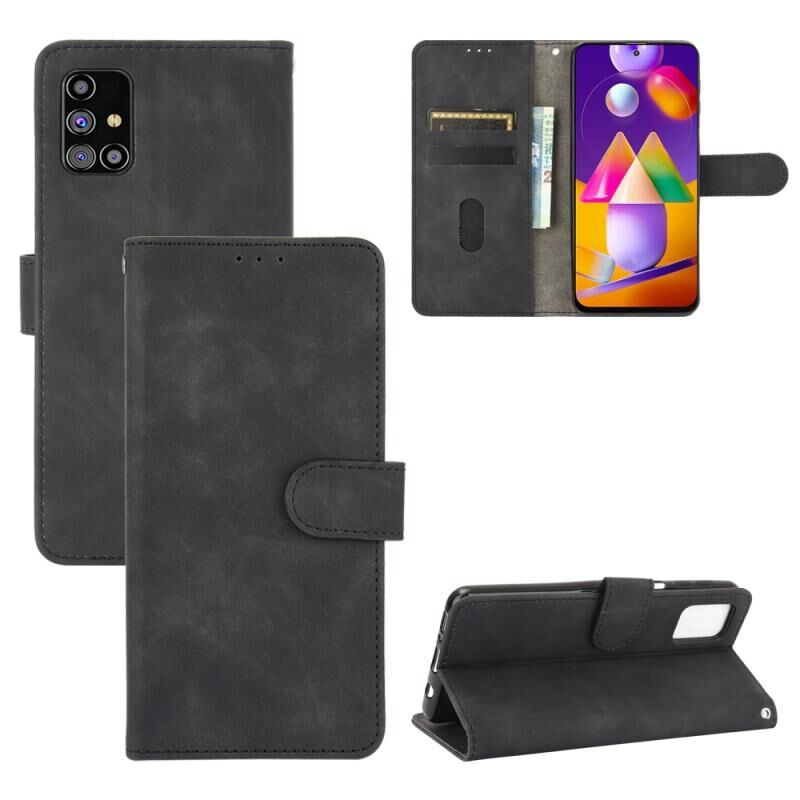 Για Samsung Galaxy M31s Αμιγές χρώμα δέρμα αίσθηση μαγνητική πόρπη οριζόντια Flip μοσχάρι υφή PU δέρμα υπόθεση με κάτοχο & υποδοχές για κάρτες & πορτοφόλι (μαύρο)