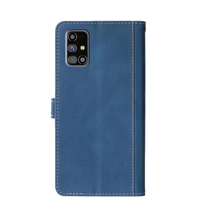Για Samsung Galaxy M31s ραφή δέρμα αίσθηση μαγνητική πόρπη οριζόντια Flip PU δέρμα υπόθεση με κάτοχο & υποδοχές για κάρτες & πορτοφόλι (Μπλε)