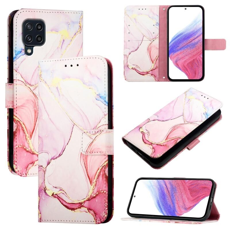 Θήκη τηλεφώνου Samsung Galaxy M32 4G Global / M22 PT003 με σχέδιο μάρμαρου, δερμάτινη, αναδιπλούμενη (Χρυσό ροζ)