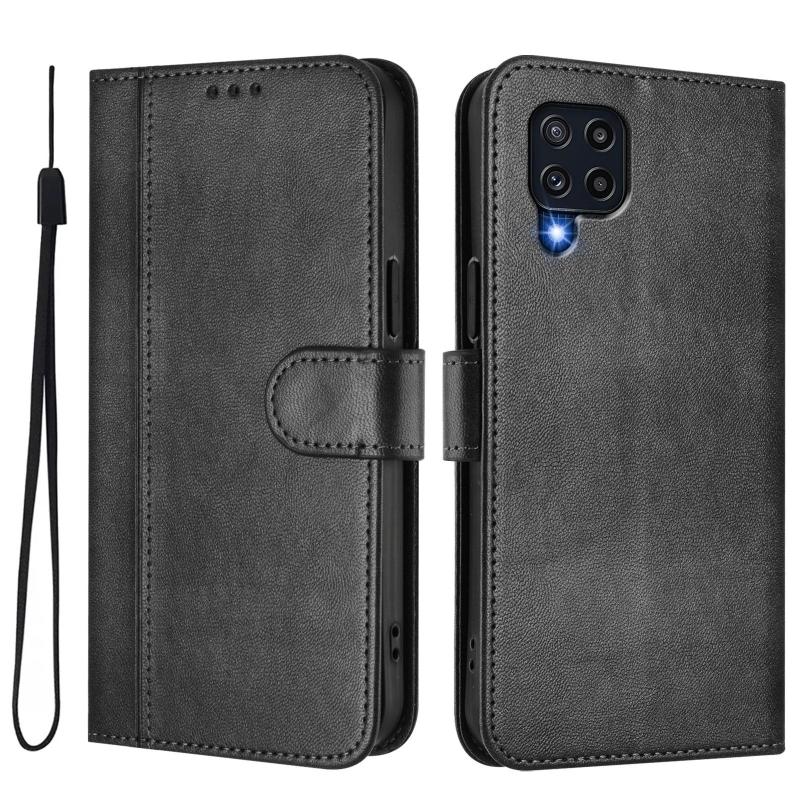 For Samsung Galaxy M32 4G / M22 Line Splicing Buckle Retro Leather Phone Case(Black)