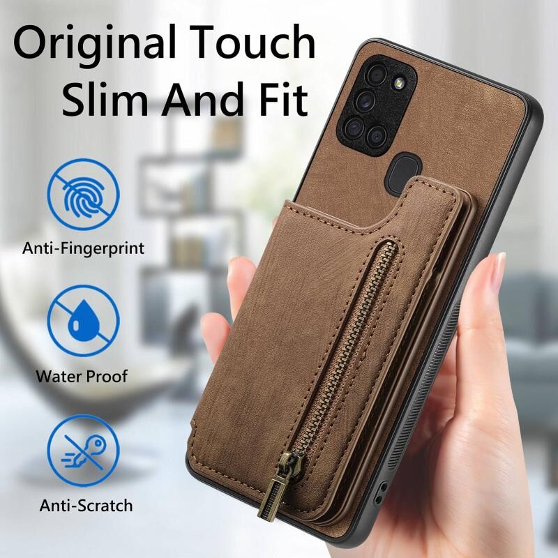 Για Samsung Galaxy M32 4G Ρετρό δέρμα φερμουάρ πορτοφόλι πίσω θήκη τηλεφώνου (Καφέ)