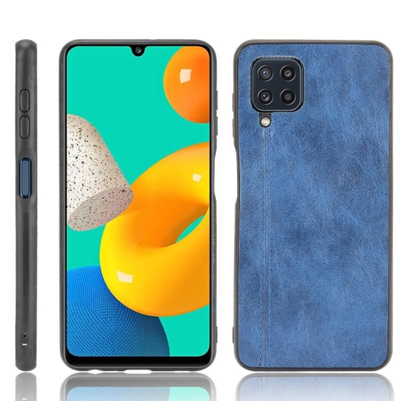 Για το Samsung Galaxy M32 4G Shockproof Ράψιμο μοτίβο αγελάδας δέρμα PC + PU + TPU υπόθεση (Μπλε)