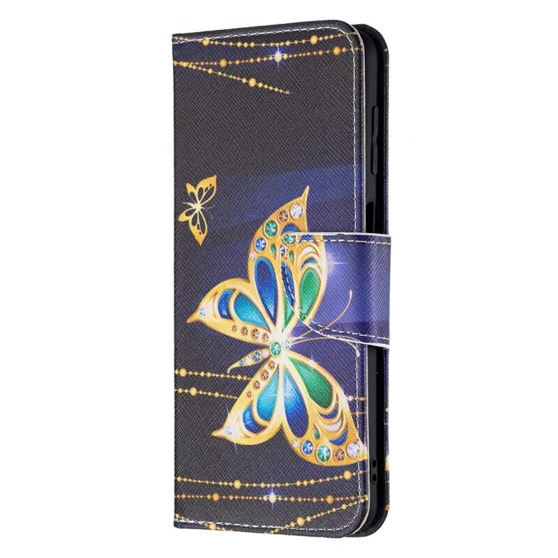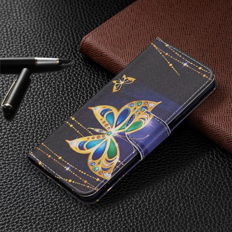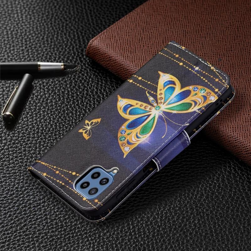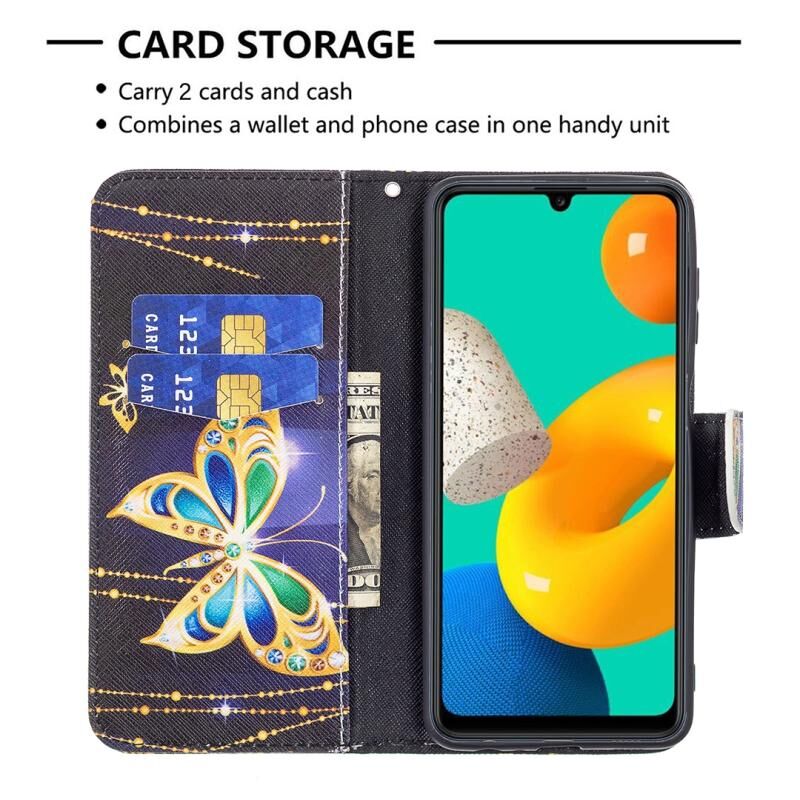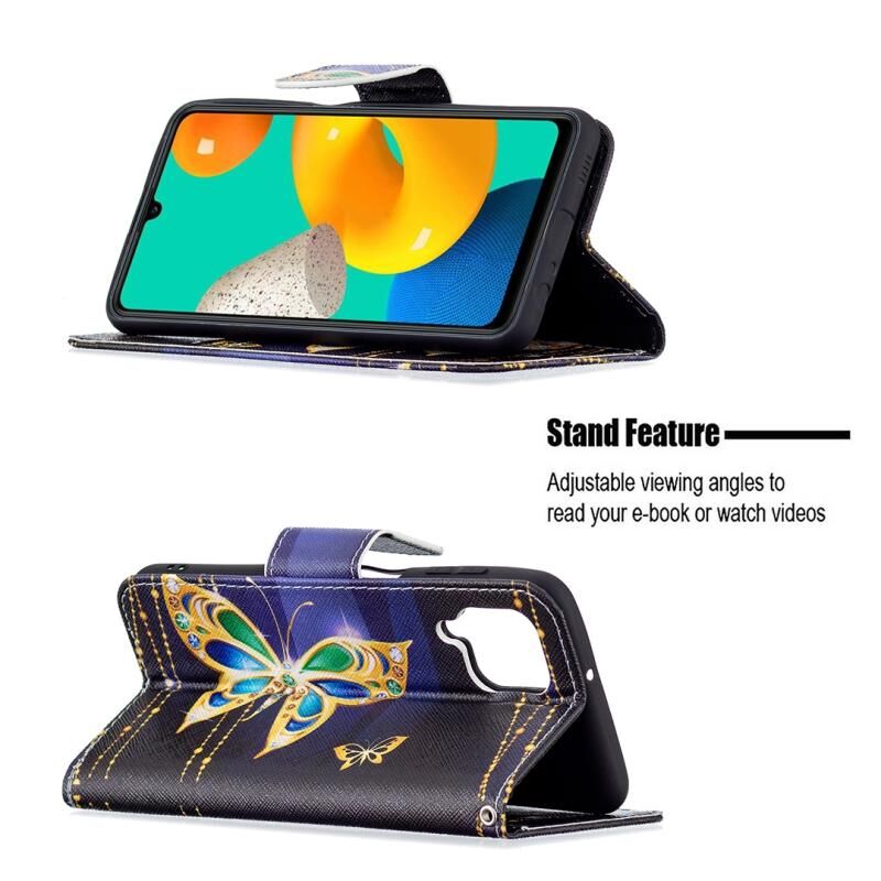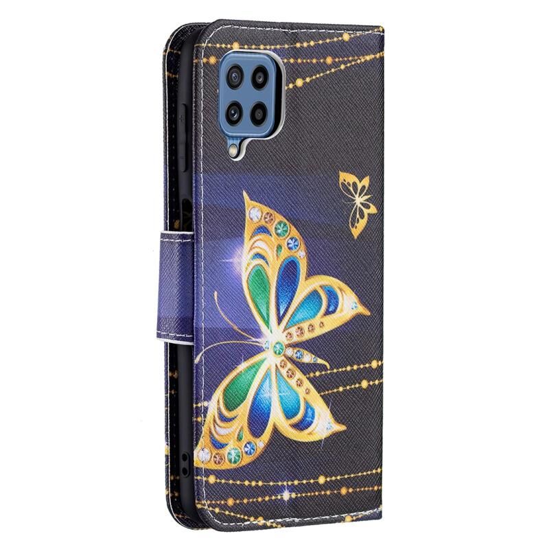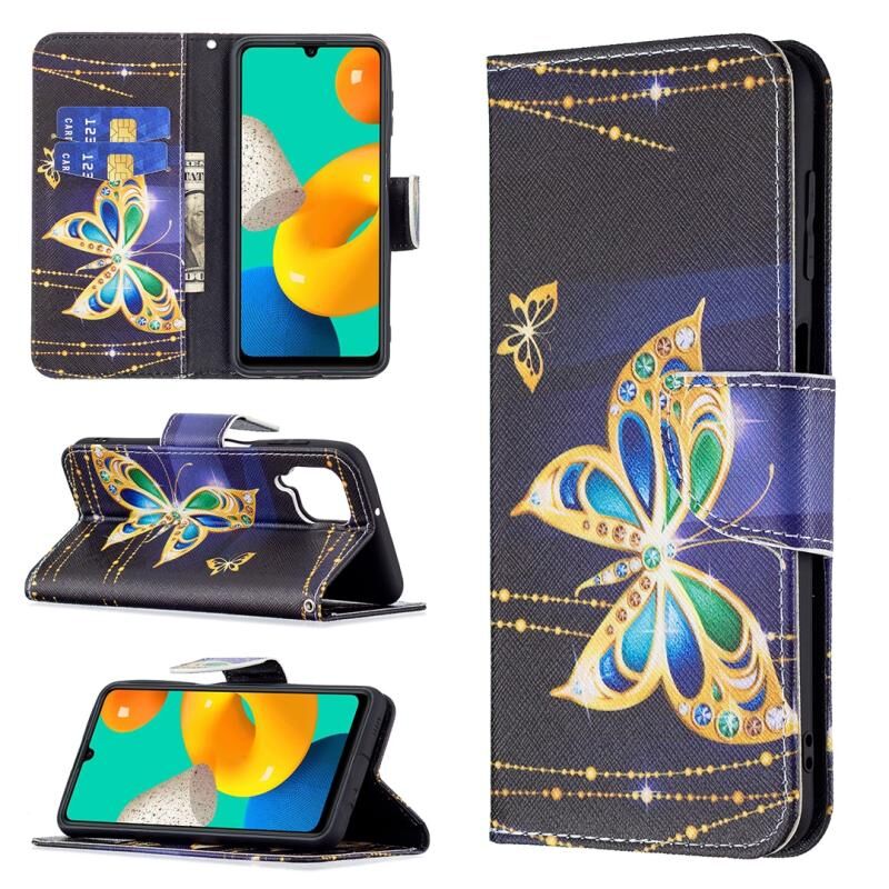 Θήκη Samsung Galaxy M32 με έγχρωμο σχέδιο, οριζόντια αναδιπλούμενη από δέρμα με βάση & θήκες για κάρτες & πορτοφόλι (Μεγάλες Πεταλούδες)