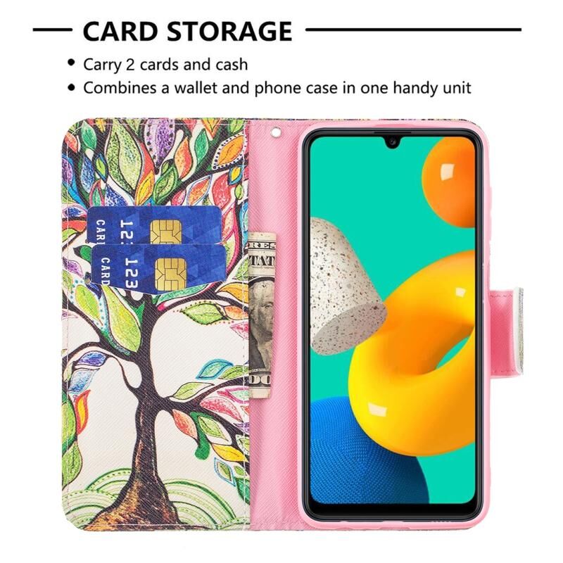 Θήκη Samsung Galaxy M32 με έγχρωμο σχέδιο, οριζόντια αναδιπλούμενη από δέρμα με βάση & υποδοχές καρτών & πορτοφόλι (Δέντρο της Ζωής)