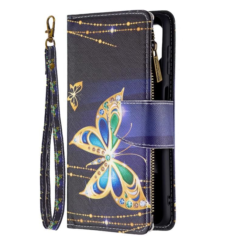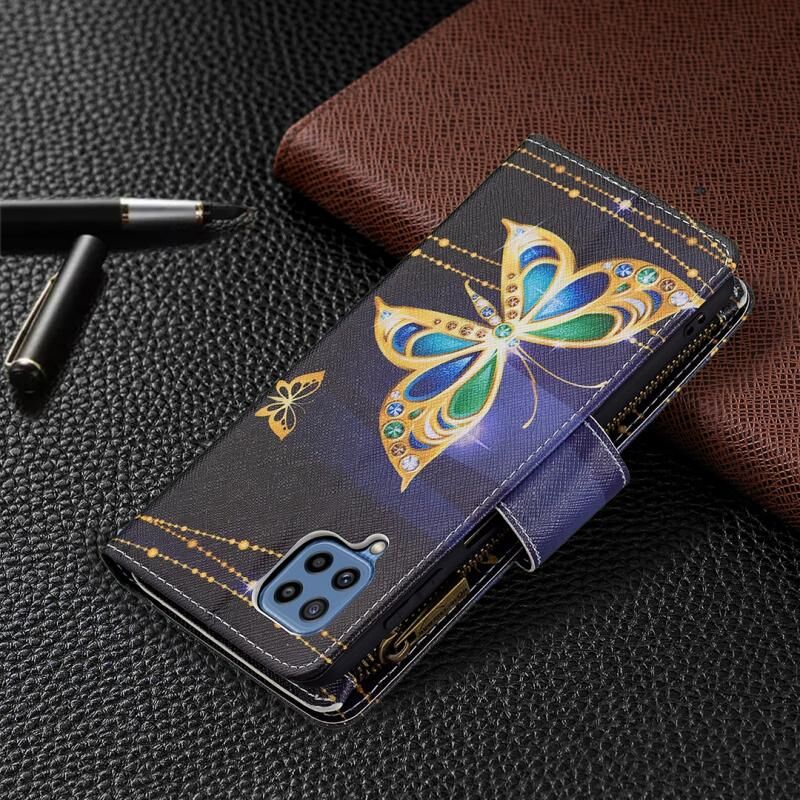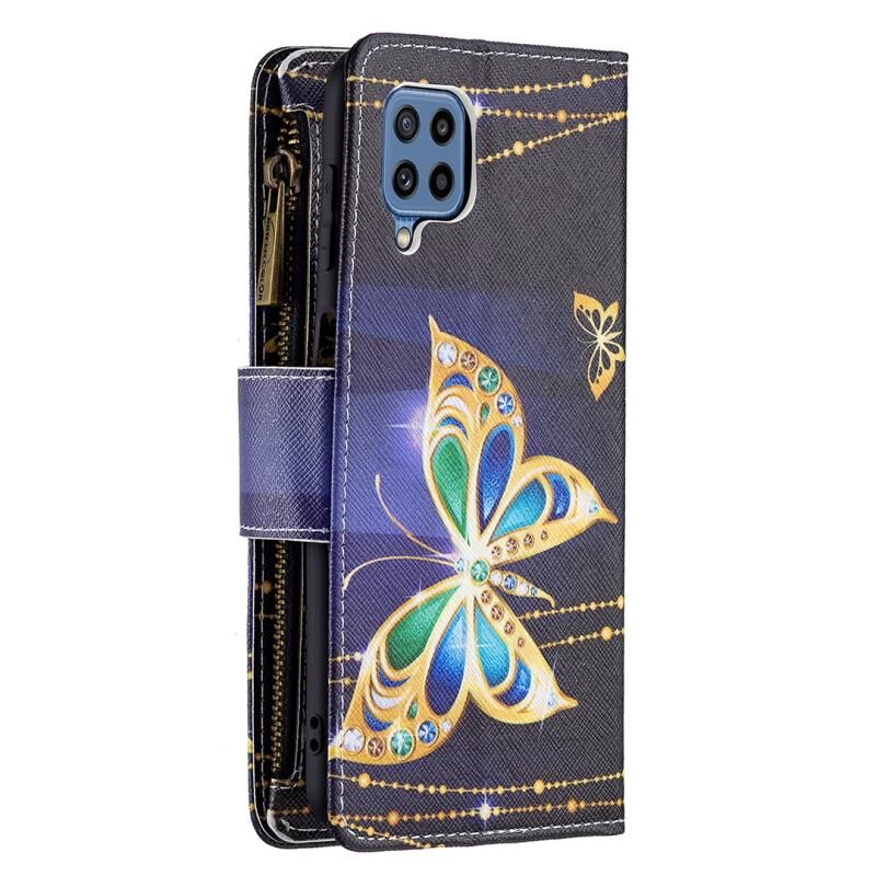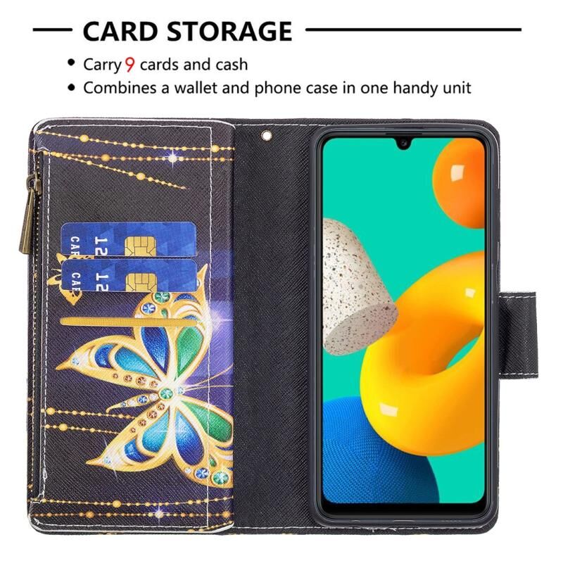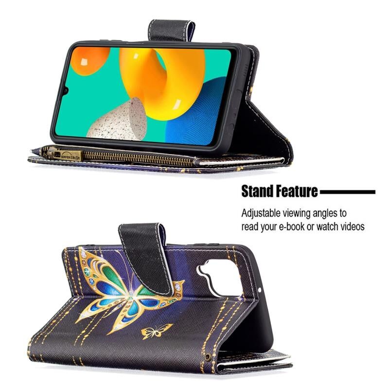 Θήκη Samsung Galaxy M32 με σχέδιο πολύχρωμης ζωγραφικής, οριζόντια, δερμάτινη με φερμουάρ, με βάση & θήκες για κάρτες & πορτοφόλι (Κόκκινο)