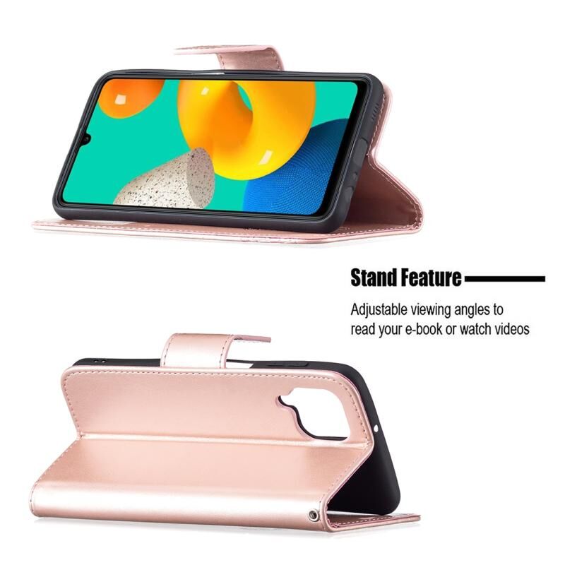 Για Samsung Galaxy M32 ανάγλυφο δύο πεταλούδες μοτίβο οριζόντια Flip PU δέρμα υπόθεση με κάτοχο & υποδοχή για κάρτες & πορτοφόλι & Lanyard (Rose Gold)
