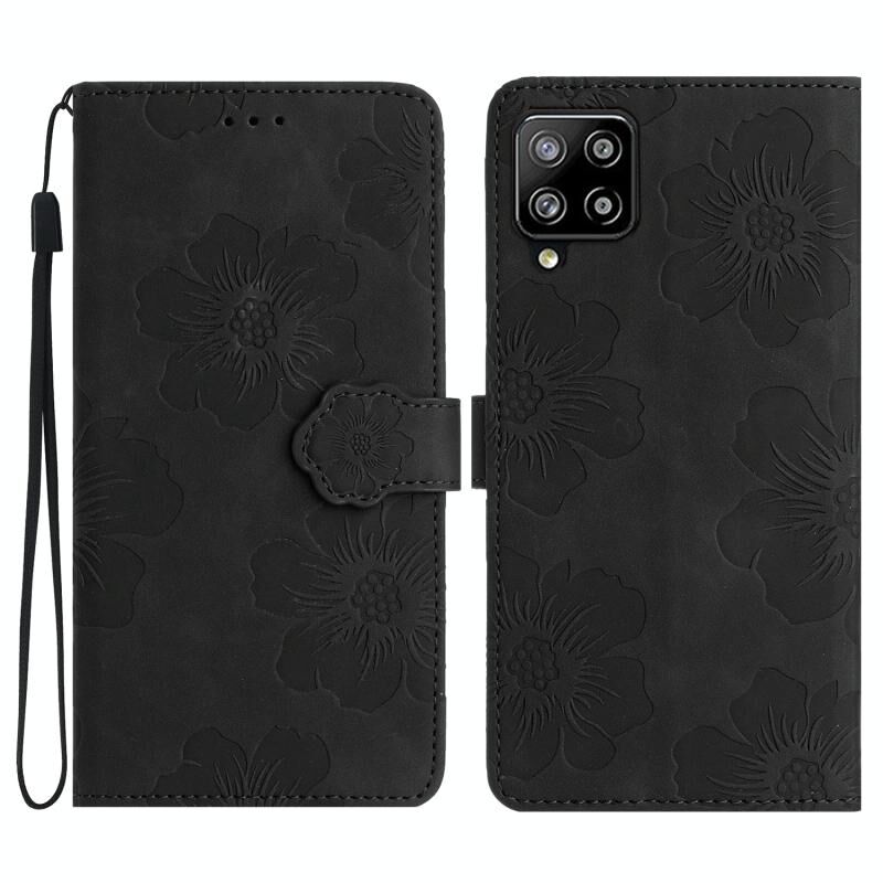 Για Samsung Galaxy M32 λουλούδι ανάγλυφο μοτίβο δερμάτινη θήκη τηλεφώνου (μαύρο)