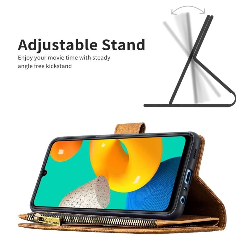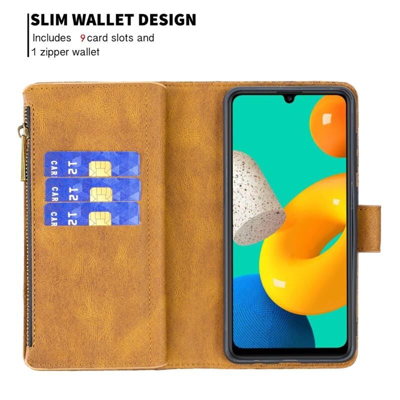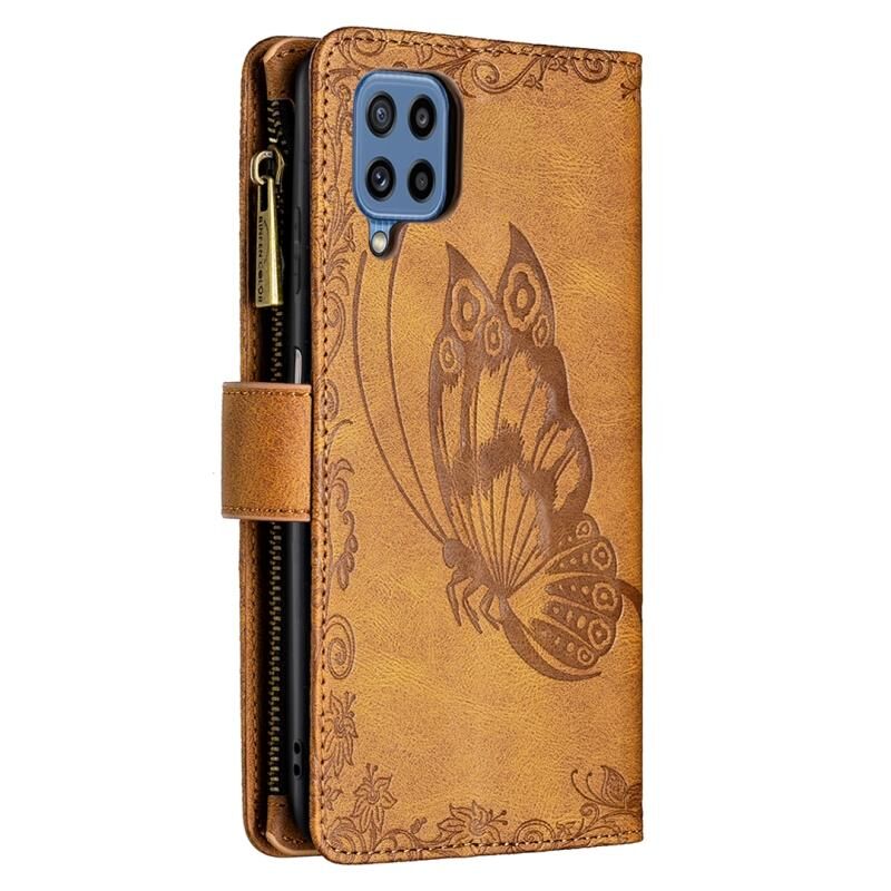 Για Samsung Galaxy M32 Flying πεταλούδα ανάγλυφο μοτίβο φερμουάρ οριζόντια Flip δερμάτινη θήκη με κάτοχο & υποδοχές για κάρτες & πορτοφόλι (καφέ)