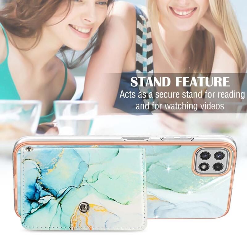 Θήκη κινητού τηλεφώνου με υποδοχή κάρτας IMD για Samsung Galaxy M32 Global με σχέδιο μαρμάρου (Green)