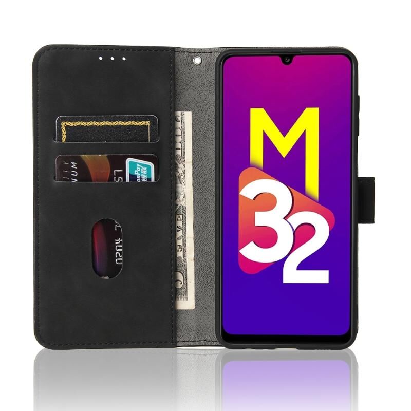 Για Samsung Galaxy M32 (Global) Αμιγές χρώμα δέρμα αίσθηση μαγνητική πόρπη οριζόντια Flip μοσχάρι υφή PU δέρμα υπόθεση με κάτοχο & υποδοχές για κάρτες & πορτοφόλι (Μαύρο)